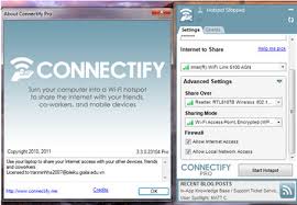 Connectify 3.7 Pro pastinya anda gak asing dengan nama ini ya.. ini adalah software yang bisa memancarkan wifi dengan memanfaatkan wifi laptop anda Jadi kalau anda nongkrong sama teman - teman tidak usah semua bawa modem,cukup 1 saja. Dengan software ini anda bisa membuat wifi kilat dan tentunya lebih praktis..